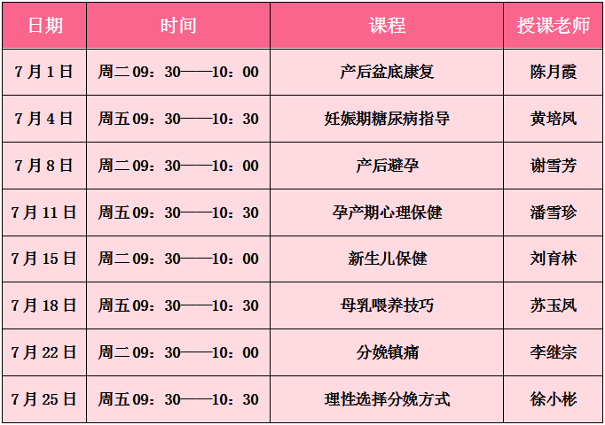 【孕妇学?!亢谩霸小毕喟椤懈狙?月份课程安排表,请查收!